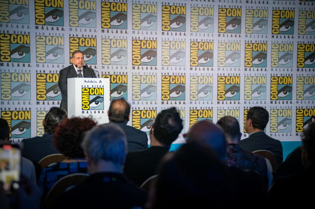 L’evento, presentato dal celebre attore, regista e sceneggiatore Santiago Segura, ha visto la partecipazione del Presidente della Junta de Andalucía, Juan Manuel Moreno Bonilla; del Sindaco di Málaga, Francisco de la Torre Prados; di David Glanzer, Chief Communications & Strategy Officer di San Diego Comic Convention, l’organizzazione dietro SDCC; e di Jaime López-Francos, CEO di DENTSU Spagna & Portogallo.